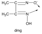 Lastly, the dimethylglyoximato ion denoted by the symbol ‘dmg’ has two donor atoms, one nitrogen and one oxygen donor atom and carries only a single negative charge. Thus, dmg is a bidentate monoanionic ligand.