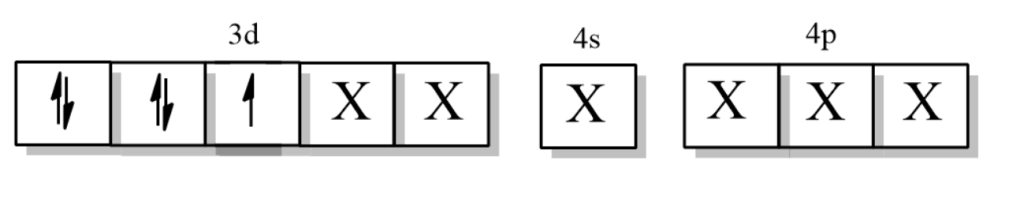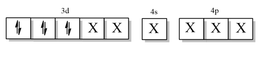 The electronic configuration of Copper in an excited state $(C{{o}^{3+}})$ \[=[Ar]3{{d}^{6}}4{{s}^{0}}\]