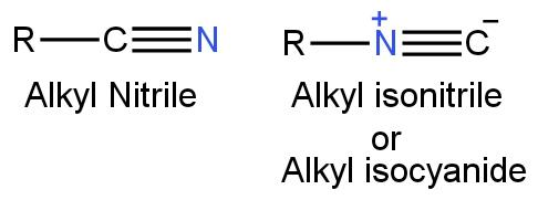 Alkyl isocyanide is an isomer of the nitrile compound.The nitrile group is one in which carbon is bonded with nitrogen and when this nitrile group is attached to an alkyl group (R) through carbon part (CN) it is known as alkyl nitrile and when this nitrile group is attached to an alkyl group (R) through nitrogen (NC) is known as alkyl isonitrile or alkyl isocyanide such as