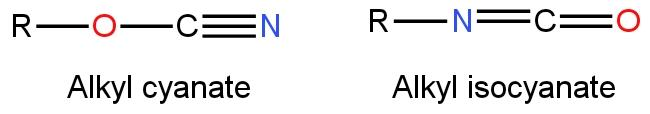 Alkyl isocyanate is a compound in which an isocyanate is a functional group. Isocyanate should not be confused with cyanate ester. In Alkyl cyanate,an alkyl group (R) is bonded through oxygen (O) of the cyanate ester functional group. Whereas in Alkyl isocyanate, an alkyl group is bonded through nitrogen (N) of isocyanate functional group such as