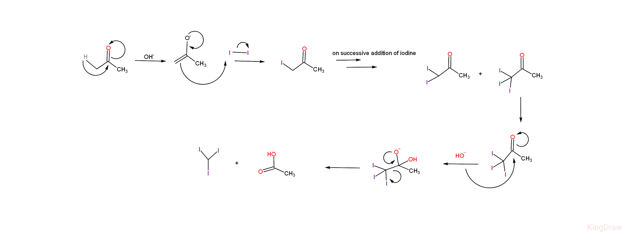 -Given below is the diagrammatic representation of the mechanism of iodoform reaction of acetone.