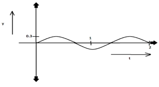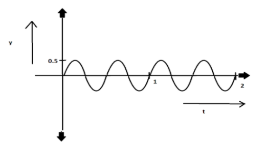 Where $y = $ displacement $\left( m \right)$, $t = $ time $\left( s \right)$.