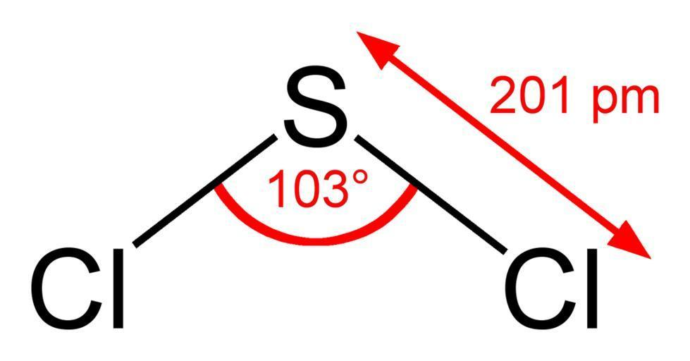 As shown in the figure, it seems to have a bent shape with asymmetric charge distribution. It further contains one Sulphur and two chlorine molecules. It has a bond angle of ${103^ \circ }$ and bond length of $201pm$