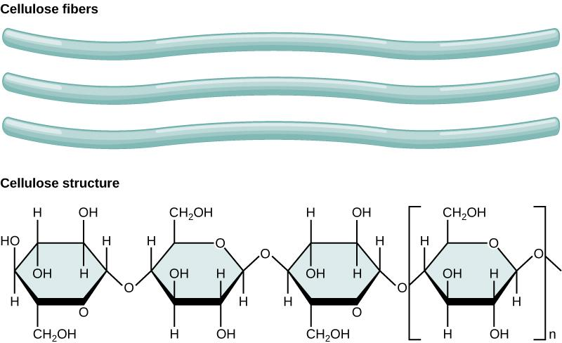Cellulose is a long chain of sugar molecules linked together. It is the key component of cell walls for plants and the essential building block for many textiles and papers.