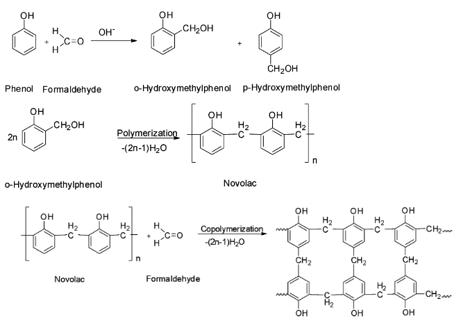 Bakelite is a synthetic polymer obtained by the condensation of phenol with formaldehyde in presence of an acid or a base catalyst. The initially formed ortho or para hydroxyl derivatives further react with phenol to give novolac which on further heating with formaldehyde gives bakelite by cross linking.
