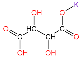 2. Potassium bitartrate/ potassium hydrogen tartrate/ cream of tartar with chemical formula KC4H5O6.