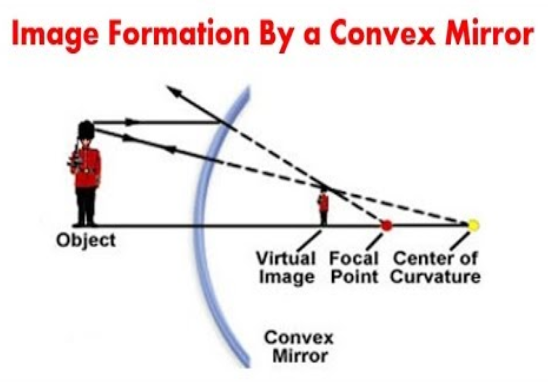 Note: A convex mirror forms an erect image but smaller in size and they are used as rear view mirrors in cars and two wheelers. They are also used as street light reflectors too since they form virtual images. They are also used in magnifying glass and telescope.