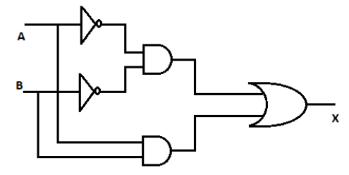 Now the resultant of Circuit P and circuit Q ie, $\overline {AB} $ and $AB$ are passing through the OR gate as input signals and the resultant will be \[\overline {AB} + AB\]