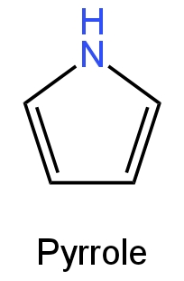 The colour of green plants is due to the chlorophyll pigment. Pyrrole is a five-membered heterocyclic aromatic organic compound containing a nitrogen atom.