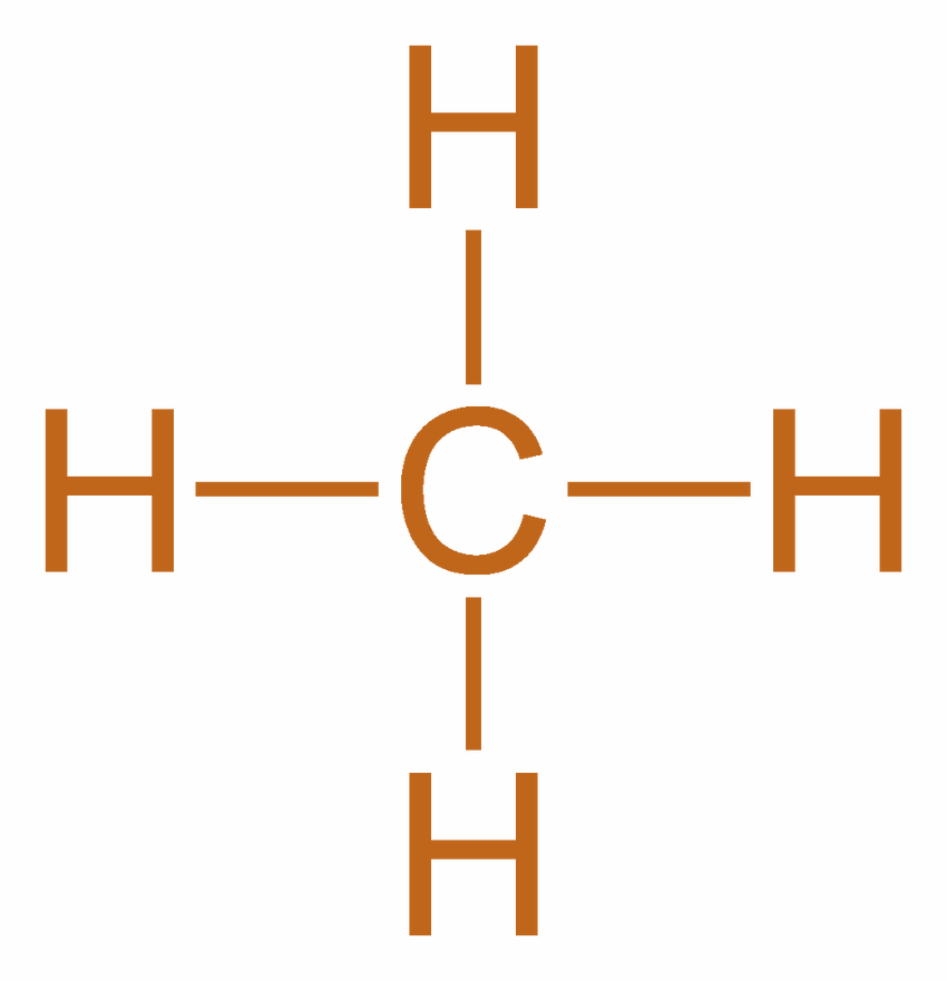 Methane is a flammable non-toxic gas. It is a tetrahedral molecule which has four equivalent \[C - H\] bonds. This gas was introduced in the year 1776 by an Italian physicist Alessandro Volta. Moreover, it is one of the most important greenhouse gases and approximately $70\% $ of the methane emissions are linked to human activities. The structure of methane is as shown: