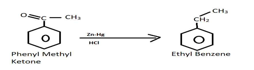 For reducing aldehydes or ketones, zinc amalgam along with HCl is used. This reaction which reduces ketones or aldehydes is also known as Clemmensen's reduction reaction. It is named after the famous Danish chemist, Erik Christian Clemmensen. The reaction is carried out below: