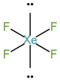 Four electrons are shared by four fluorine atoms. Two lone pairs of electrons remain on the Xe atom.