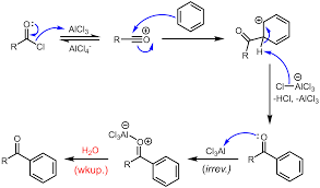 Hint: Friedel-Crafts reaction is used to introduce alkyl or acyl moiety in the compound in the presence of Lewis acids like\[{\text{AlC}}{{\text{l}}_{\text{3}}}\]through the formation of carbocation intermediate.