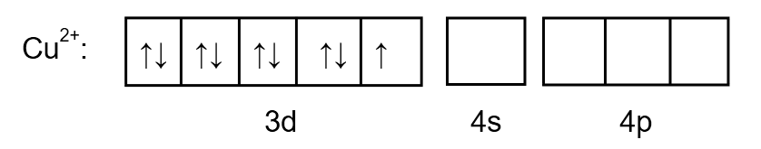 Image: electronic arrangement of \[{\left[ {Cu{{\left( {N{H_3}} \right)}_4}} \right]^{2 + }}\]