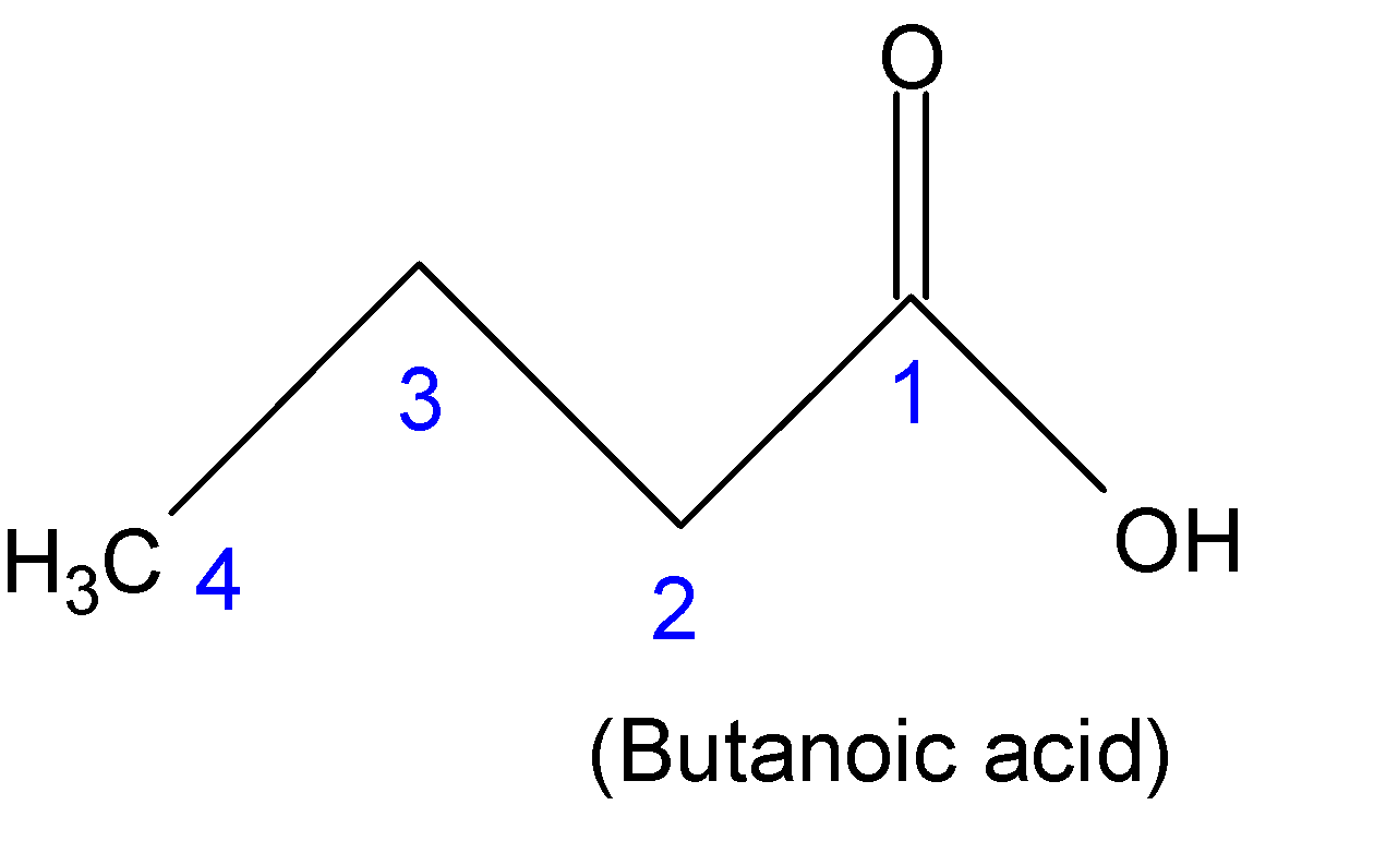 Finally, (D)$C{{H}_{3}}C{{H}_{2}}C{{H}_{2}}COOH$, has four carbon atoms, then the IUPAC name would be butanoic acid.
