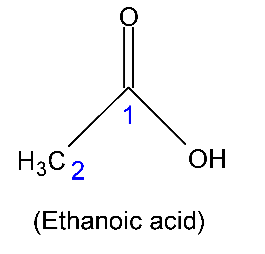 For example, an acid $C{{H}_{3}}COOH$has two carbon atoms, and thereby it is called ethanoic acid [That is (ethan $+$oic acid)$=$ethanoic acid].