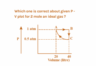 Which one is correct about the given P-V plot for 2 mole of an ideal gas?