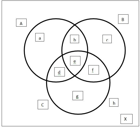 Complete step by step solution: Draw a Venn-diagram taking three intersecting sets A, B and C under a universal set X. After intersection eight regions will be developed.