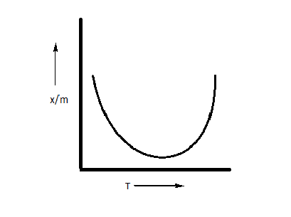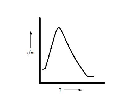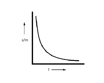 Adsorption is also a spontaneous reaction, i.e. it occurs at room temperature. So, we can say that the bond formation energy between the adsorbate and adsorbent is low. This also means that adsorption is an exothermic reaction. As we know that according to Le-Chartelier’s principle, as the temperature of an exothermic reaction is increased, the reaction proceeds backwards, i.e. in this case, adsorption decreases. So with increase in temperature, $\dfrac{x}{m}$ also decreases.