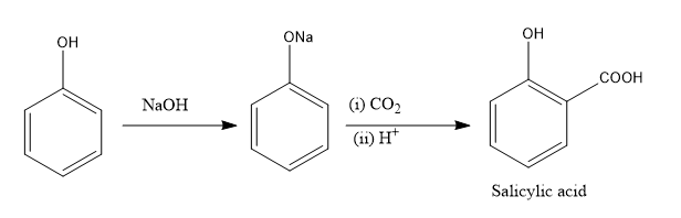 First, we will understand what Kolbe's reaction is. Kolbe's reaction is the conversion of phenol into salicylic acid. In the first step, phenol is converted into phenoxide ion by reacting it with sodium hydroxide. In the second step, the reaction of phenoxide ions with carbon dioxide in an acidic medium gives salicylic acid.