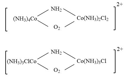 Note: It is important to note that the coordination isomerism can also be exhibited by the polynuclear complexes and bridging complexes by changing the position of the ligands with respect to different metal atoms present within the complex. An example for the same is shown below: