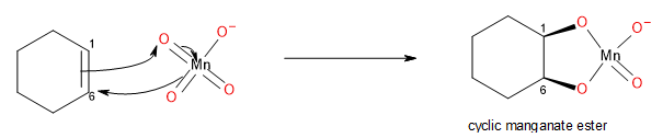 Image: Formation of cyclic manganate ester through cycloaddition of permanganate ion to cyclohexene.