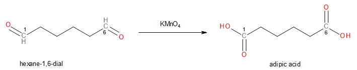 Image: Oxidation of Hexane-1,6-dial to Adipic Acid.