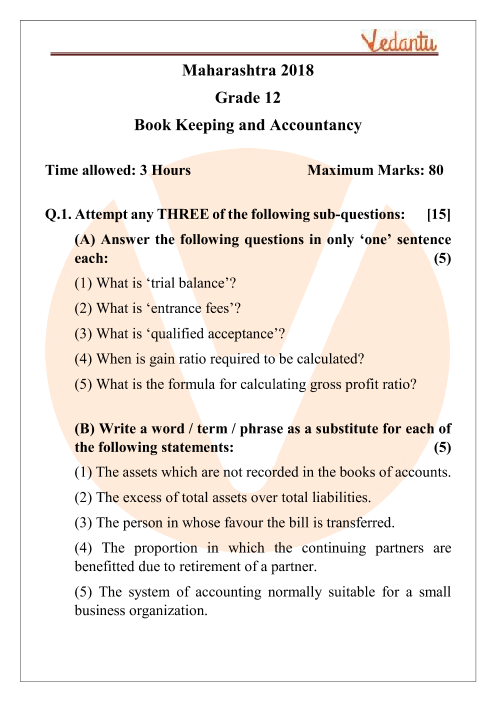 FAQs on MSBSHSE Class 12 Accountancy Question Paper 2018