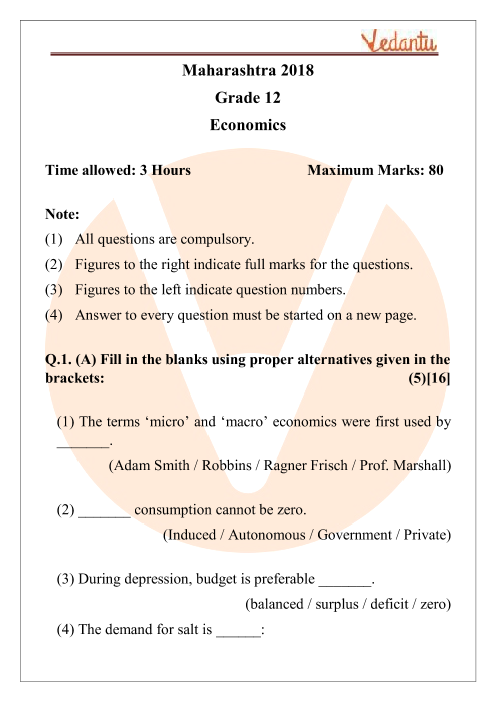 FAQs on MSBSHSE Class 12 Economics Question Paper 2018