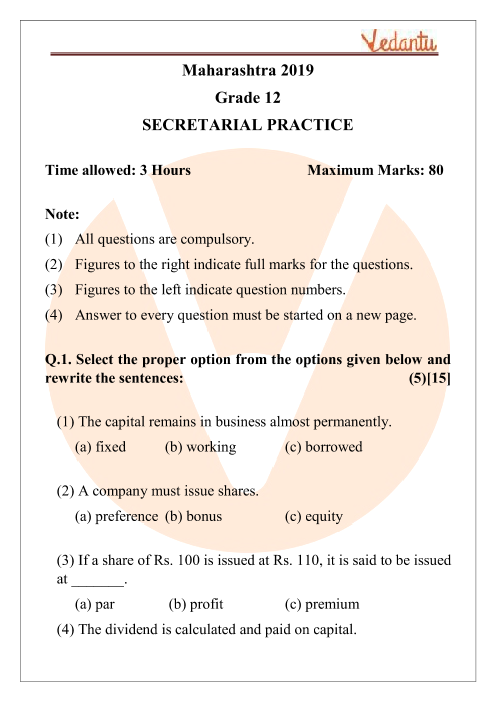 FAQs on Class 12 Secretarial Practice MSBSHSE Question Paper 2019
