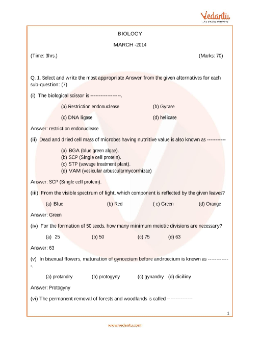 FAQs on Maharashtra Board (MSBSHSE) Previous year Question Paper for Class 12 Biology 2014
