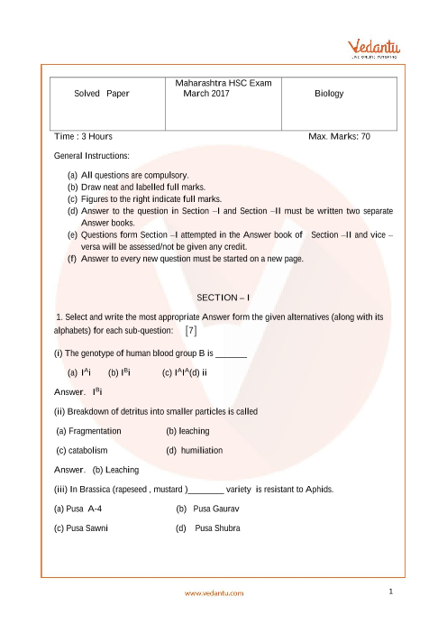 FAQs on Maharashtra Board (MSBSHSE) Previous year Question Paper for Class 12 Biology 2017