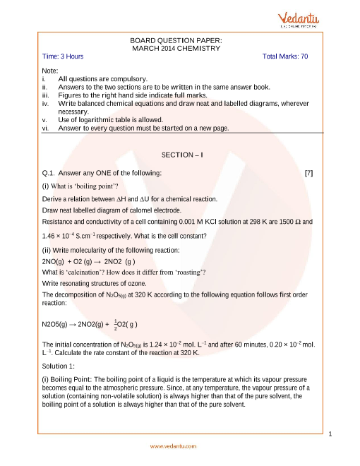 HSC Board Exam Chemistry paper of 2014 is for a total of 70 marks to be written in 3 hours. Questions about boiling point, diagram of calomel electrode, deriving equations of different elements, finding out the cell constant, the resonating structure of ozone, rate constant of reaction at a certain temperature, osmotic pressure, hydrogen bonding, oxidation, polyhalite ions, calculating the volume of the copper unit cell, the relation between half-life period and rate constant, etc., were asked in the 2014 Chemistry paper of the HSC Board Exam. For a detailed explanation please visit this page.