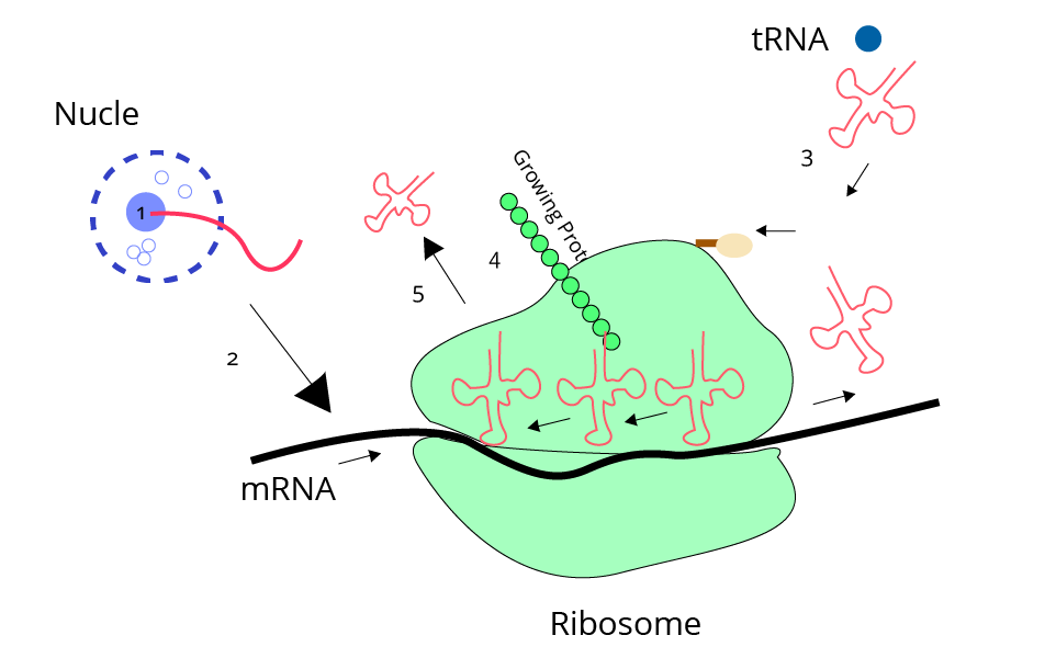 Two main processes are involved in the synthesis of proteins. These are transcription and translation. The mRNA molecule that is synthesised in the nucleus during transcription is released into the cytoplasm. In the cytoplasm, the proteins are synthesised using mRNA by the process of translation.