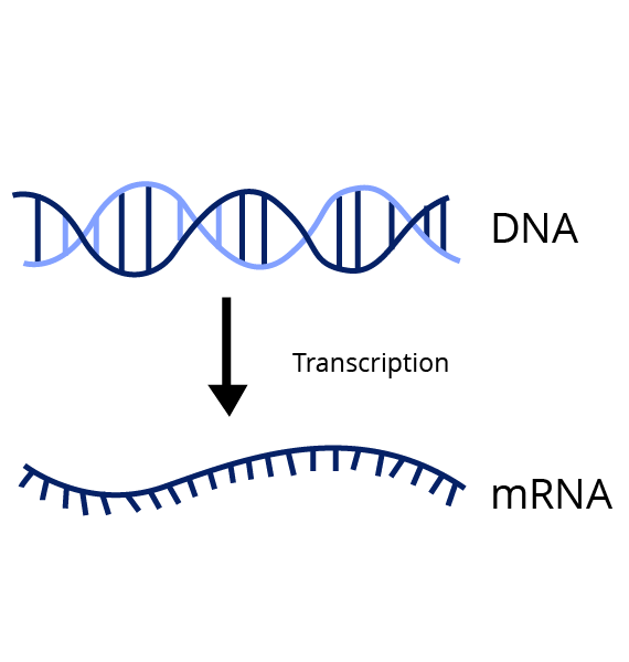 Ans: In the process of transcription, the genetic material is transferred from DNA to mRNA in the presence of an RNA polymerase enzyme. The transcription process involves the following stages: