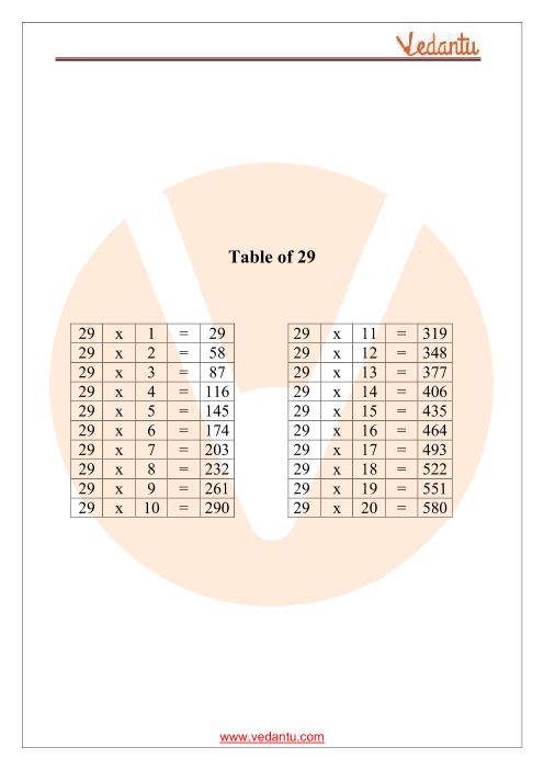 FAQs on Table of 29: Complete Multiplication Chart and Easy Learning Guide