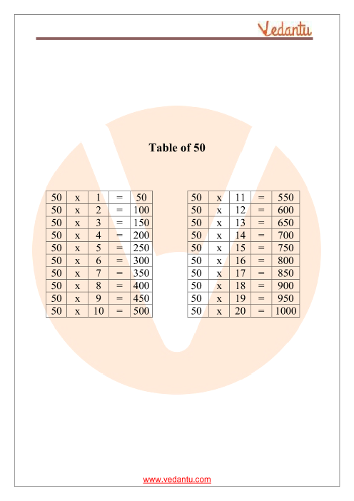 Table of 50 – Multiplication Chart, Tricks & Free PDF