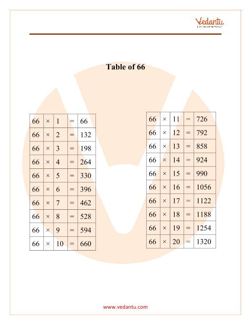 FAQs on Table of 66: Multiplication Chart for Quick Learning