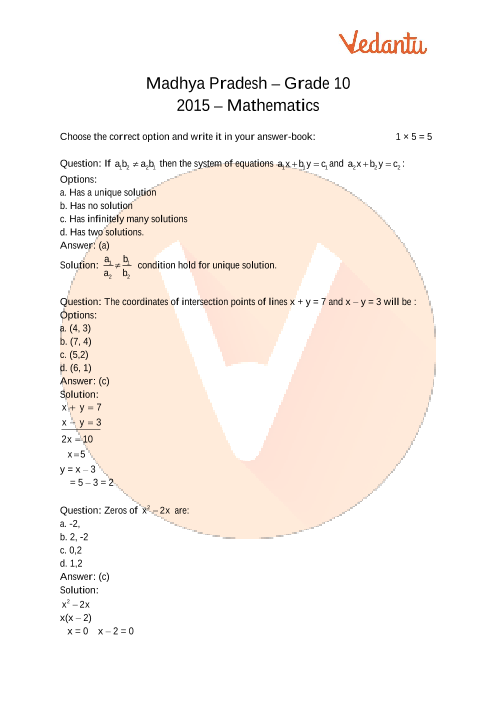 MP Board ( MPBSE ) Class 10 Maths Paper 2015 with Solutions - Free PDF Download.