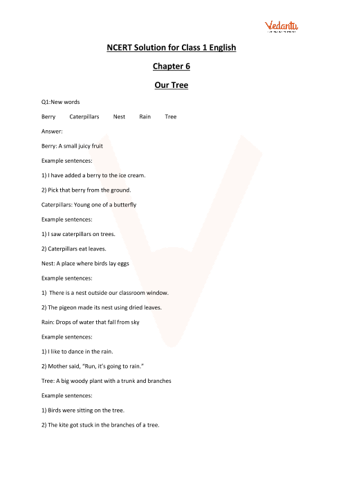 FAQs on NCERT Solutions For Class 1 English Marigold Chapter 6 Our Tree - 2025-26