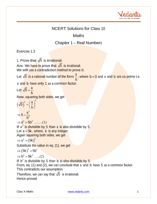 In this section of NCERT Solutions for Class 10th Maths Chapter 1, you will remember the definition of Irrational numbers learned in earlier classes and then prove p is an irrational number, where p is a prime number.