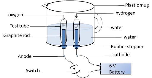 Water consists of hydrogen and oxygen atoms. It is a combination of two hydrogen and one oxygen atom. In electrolysis, hydrogen moves towards the cathode and oxygen towards the anode. So, the ratio of hydrogen and oxygen is 2:1. And hydrogen is double the amount of oxygen.
