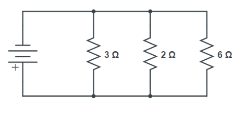Ans: The following circuit diagram shows three resistors of resistances $\text{5}\Omega $, \[\text{8 }\!\!\Omega\!\!\text{ }\] and \[\text{12 }\!\!\Omega\!\!\text{ }\!\!~\!\!\text{ }\] respectively connected in series with a battery of potential \[\text{6 V}\].