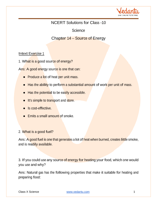 NCERT Solutions For Class 10 Science Chapter 14 Sources Of Energy - 2025-26
