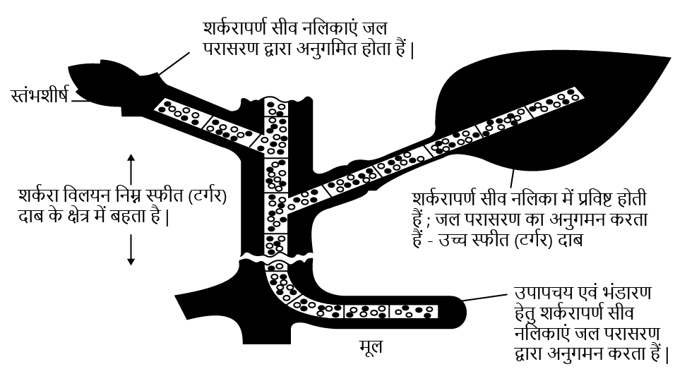 - Sugar loading at the source (e.g., leaves) creates a hypertonic condition in the phloem sieve tubes.