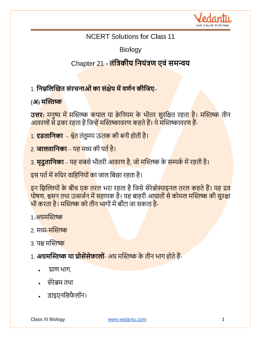 Table of ContentIf you ever feel confused about how the nervous system or sense organs function, don’t worry! Vedantu’s explained answers and step-by-step Class 11 Biology NCERT Solutions make things super clear and easy. You can also download the free PDF to revise anytime for your exams.