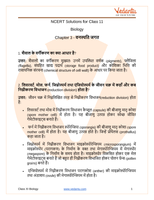 FAQs on NCERT Solutions For Class 11 Biology Chapter 3 Plant Kingdom in Hindi - 2025-26