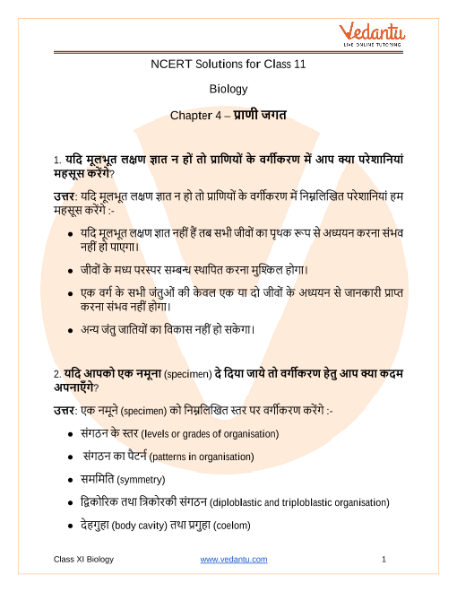 NCERT Solutions for Class 11 Biology Chapter 4 in Hindi medium PDF download are easily available on our official website (vedantu.com). Upon visiting the website, you have to register on the website with your phone number and email address. Then you will be able to download all the study materials of your preference in a click. You can also download the Class 11 Biology Animal Kingdom solution Hindi medium from Vedantu app as well by following the similar procedures, but you have to download the app from Google play store before doing that.