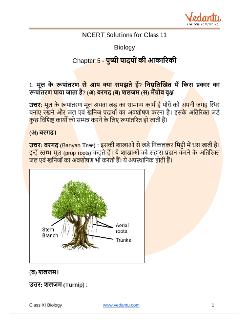 Step-by-Step Solutions For Class 11 Biology Chapter 5 In Hindi - Free PDF Download