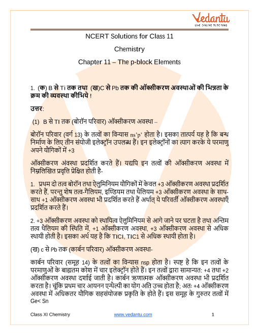 NCERT Solutions for Class 11 Chemistry Chapter 11 in Hindi medium PDF download are easily available on our official website (vedantu.com). Upon visiting the website, you have to register on the website with your phone number and email address. Then you will be able to download all the study materials of your preference in a click. You can also download the Class 11 Chemistry The p-Block Elements solution Hindi medium from Vedantu app as well by following the similar procedures, but you have to download the app from Google play store before doing that.